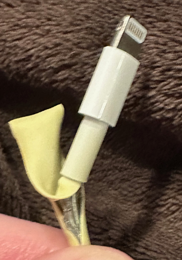 The worst of it? It's not the only cable I've had to replace with more money wasted. I've had other cables rip apart. And if you notice the yellowness that's not because of me. That's the problem with the cable itself. Another one had a sticky residue after breaking open. The only kinds of cable I've ever had this happen with is from Apple. This is yet another example of quality control problems which makes it more ironic and hypocritical of them to refuse to give me money - besides the fact that it was blatant incompetence on their part. But it gets even better!